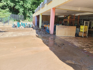 Das gesamte Erdgeschoss, die Außenanlagen und das Sportgelände wurden durch die Flut komplett zerstört und Direktor Wolfgang Schmitz erläuterte, dass der Träger, die Gemeinde, der Landkreis und der Förderverein der Schule nicht alleine alle Reparaturen und Neuanschaffungen werden stemmen können.